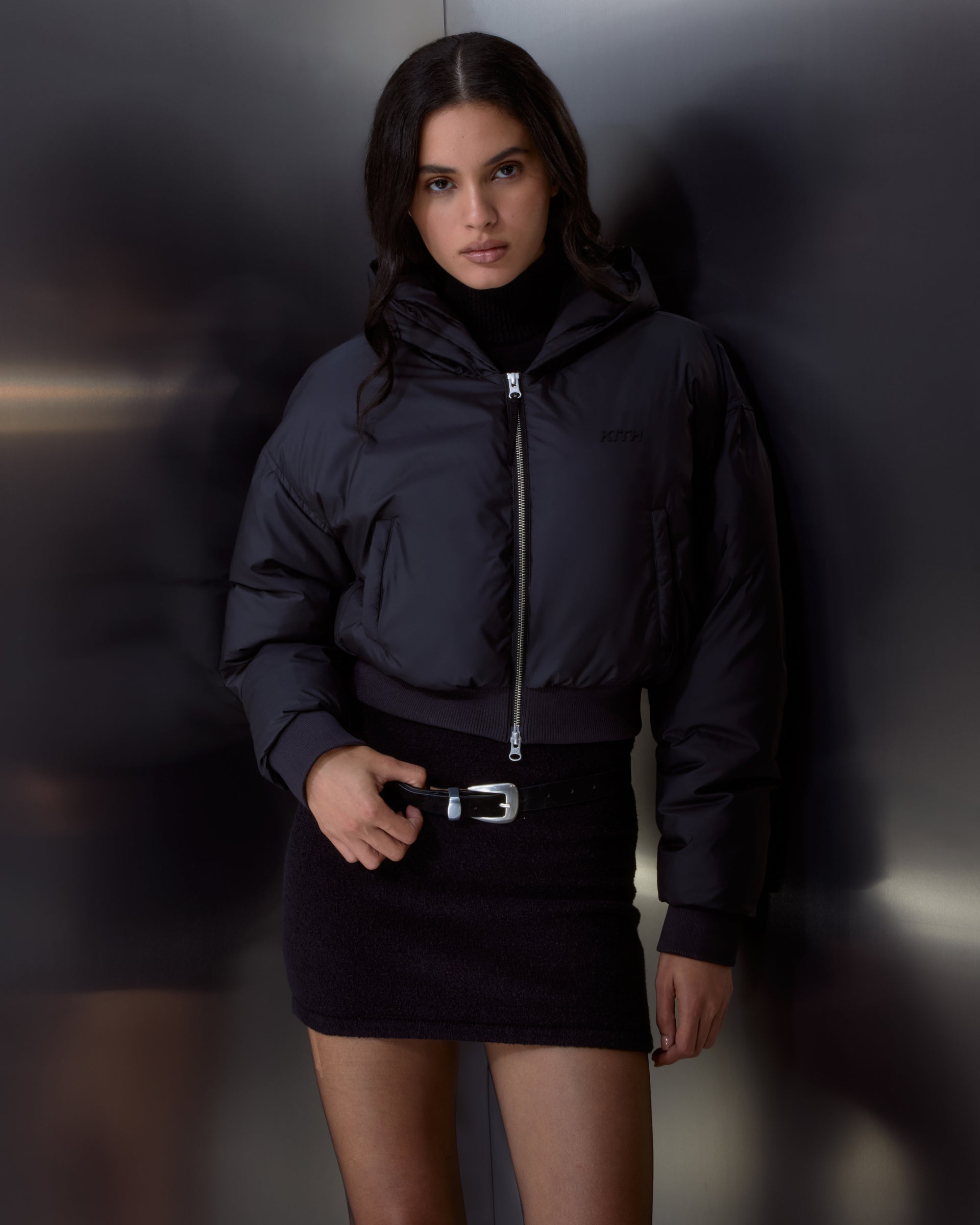 Kith Women Bex Cropped Sueded Jersey Puffer$535.00 CAD