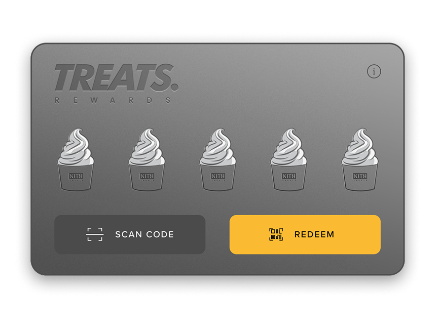 Earn complimentary Treats as a reward for repeat in-store purchases at Kith Treats. Access the Treats Rewards Card via the Loyalty tab on the Kith App.